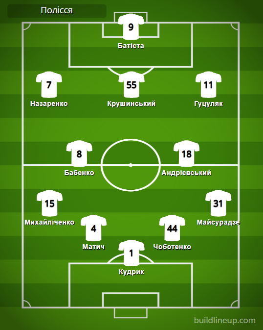 «Полесье»: Кудрик – Михайличенко, Матич, Чоботенко, Майсурадзе (Тейлор, 46) – Бабенко, Андриевский (Йосефи, 75) – Назаренко (Гонсалвеш, 75), Крушинский (Сарапий, 61), Гуцуляк – Батиста (Бристрич, 90+2).
