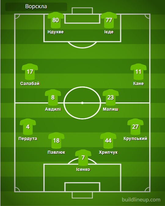 «Ворскла»: Исенко – Пердута, Павлюк, Хрипчук (Фернан, 80), Крупский – Салабай, Авдили, Малыш (Челядин, 63), Кане (Мякушко, 63) – Ндукве (Островский, 63), Иеде.