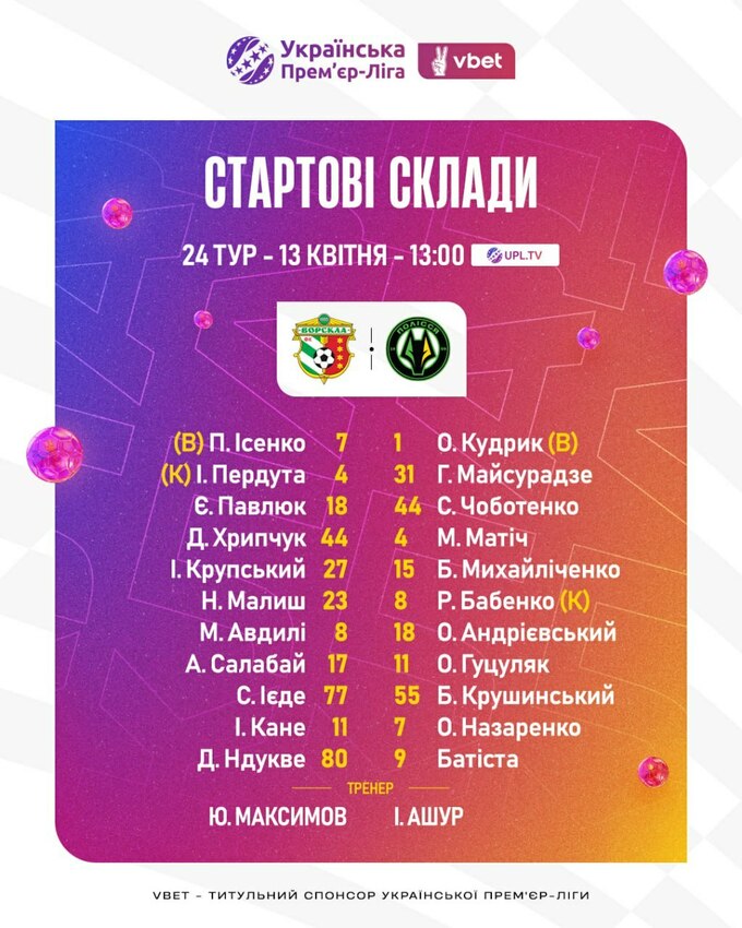 В воскресенье, 13 апреля, в 13:00 состоится матч 24-го тура Премьер-лиги Украины 2024/2025, в котором сыграют «Ворскла» и «Полесье».
