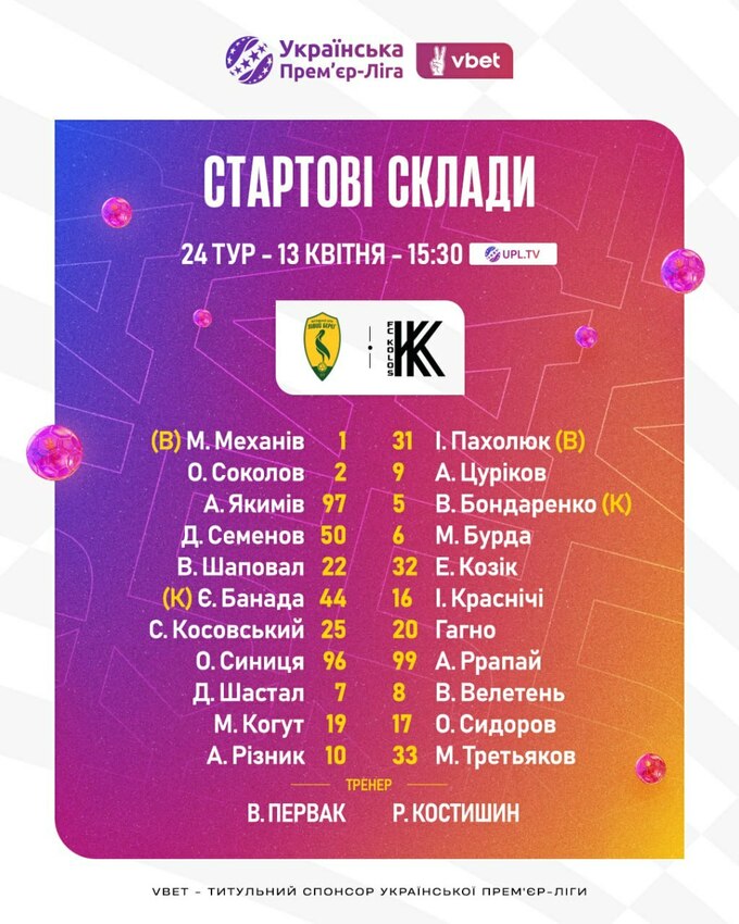 В воскресенье, 13 апреля, в 15:30 состоится матч 24-го тура Премьер-лиги Украины 2024/2025, в котором сыграют «Левый Берег» и «Колос».