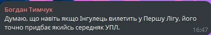 Богдан Тимчук: Думаю, что даже если Ингулец вылетит в Первую Лигу, его точно приобретет какой-нибудь середняк УПЛ.