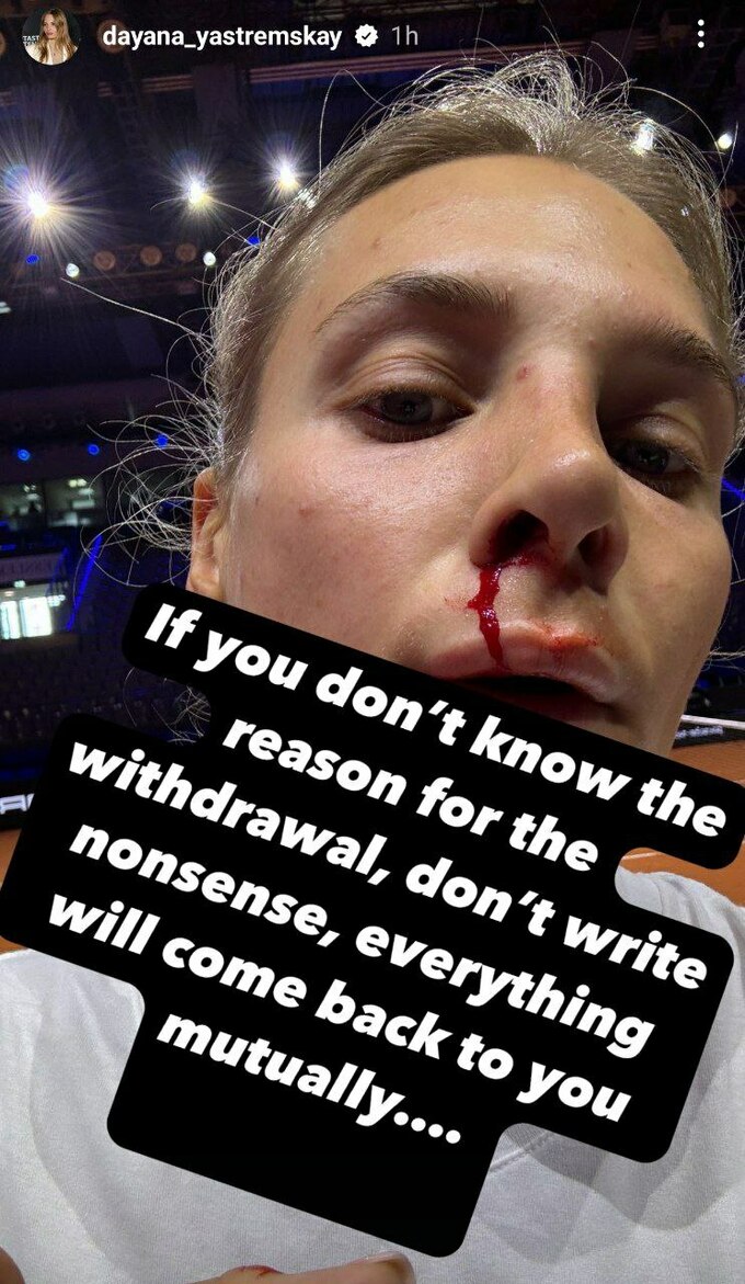 ФОТО. «Не пишите чепуху». Ястремская показала лицо и кровь из носа