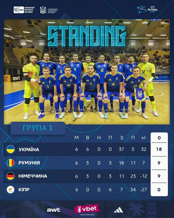 Квалификация ЧЕ-2026 по футзалу. Турнирная таблица группы 1