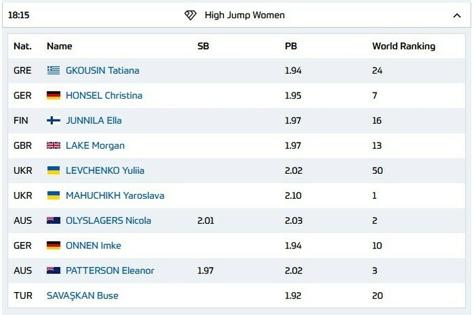 Украину на этом этапе представят две спортсменки – Ярослава Магучих и Юлия Левченко – в секторе для прыжков в высоту.