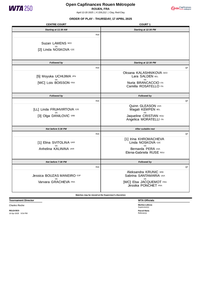 17 апреля Элина и Ангелина определят четвертьфиналистку турнира WTA 250 в Руане