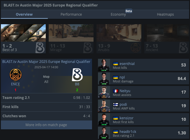 ENCE – B8 Esports – 1:2 (11:13, 13:9, 7:13)