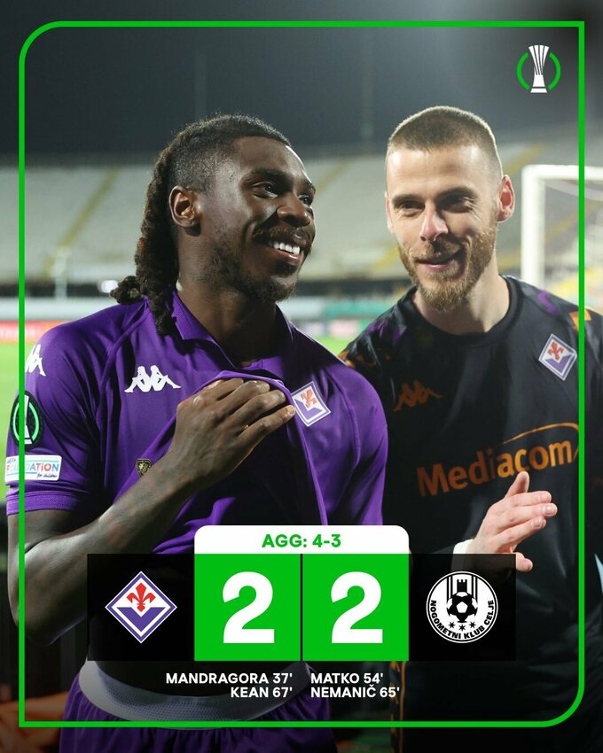 - 19:45. Фиорентина (Италия) – Целе (Словения) – 2:2 (первый матч – 2:1)