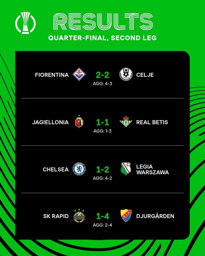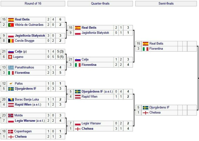 В полуфиналах сыграют: Бетис – Фиорентина, Юргорден – Челси