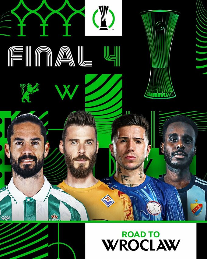 Синие, фиолетовые, зелено-белые. Известны пары 1/2 финала Лиги конференций
