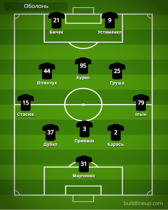 «Оболонь»: Марченко – Стасюк, Дубко, Приймак, Карась, Ильин – Витенчук (Мороз, 63), Курко (Слободян, 63), Груша (Мединский, 77) – Бичек (Близниченко, 64), Устименко (Теслюк, 46).