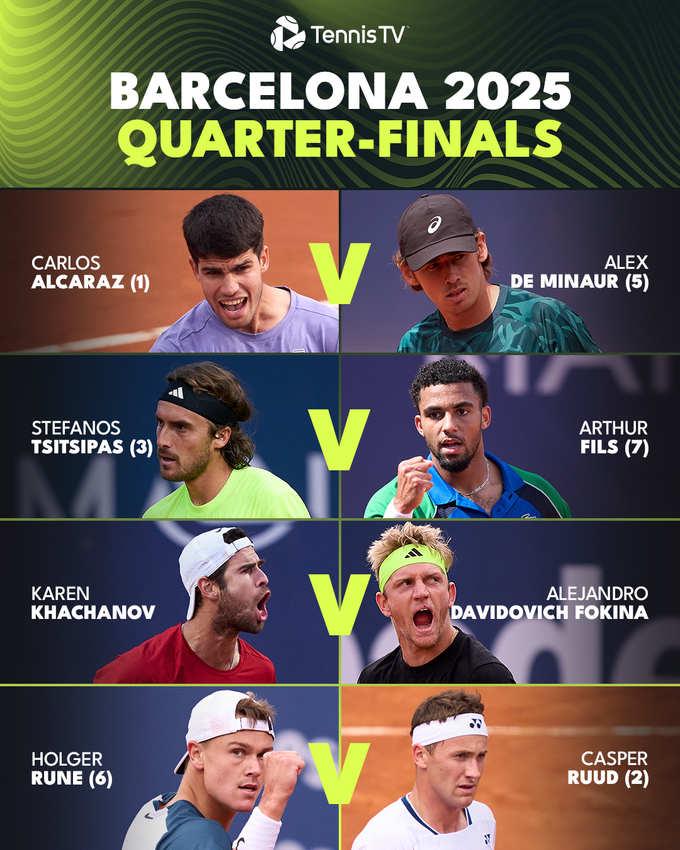 На грунтовом турнире ATP 500 в Барселона (Испания) определены пары 1/4 финала.
