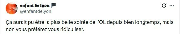 𝖊𝖓𝖋𝖆𝖓𝖙 𝖉𝖊 𝖑𝖞𝖔𝖓: Это мог бы быть лучший вечер OL за долгое время, но нет, ты предпочитаешь выставить себя дураком.