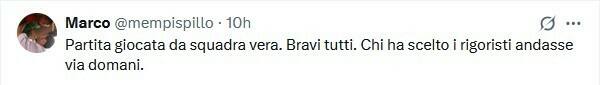 Marco: Матч, сыгранный настоящей командой. Молодцы все. Тот, кто выбрал пенальтистов, должен уйти уже завтра.