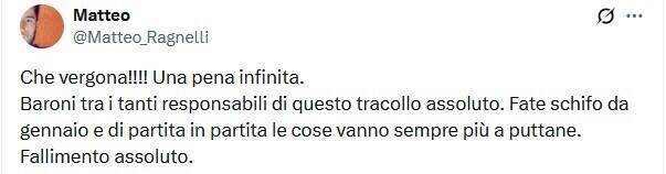 Matteo: Какой позор!!!! Барони среди многих ответственных за этот абсолютный крах. Вы были дерьмом с января, и с каждым матчем все больше идет к чертям. Абсолютный провал.