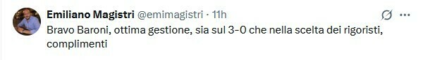 Emiliano Magistri: Молодец, Барони, отличный менеджмент, как при счете 3-0, так и в выборе исполнителей пенальти, поздравляю.