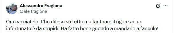Alessandro Fragione: Теперь выгоните его. Я защищал его во всем, но позволять травмированному игроку исполнять пенальти – это глупо. Он хорошо сделал, что сказал ему, чтобы он пошел к чертям!