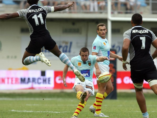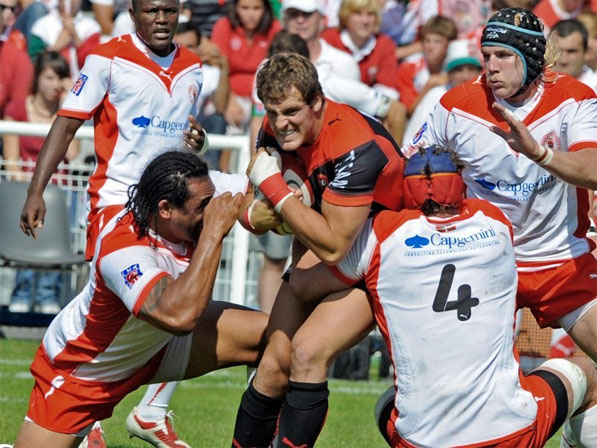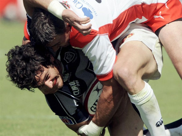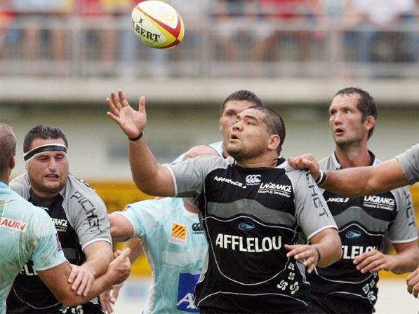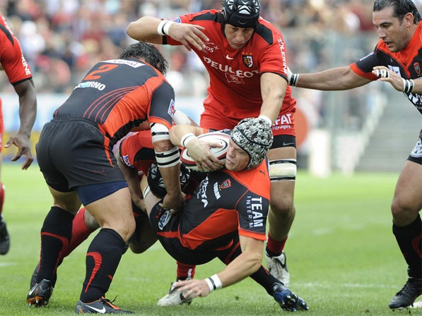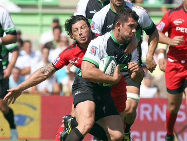 Байрон Келлехер (57 игр за All Blacks) из Тулузы пытается остановить грузино-итальянца Грегори Арганезе (Монтабан)