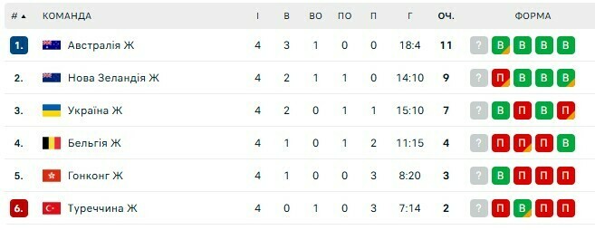 Сборная Украины набрала 7 очков и находится на третьей позиции. Команда завершит турнир 20 апреля встречей против Гонконга.