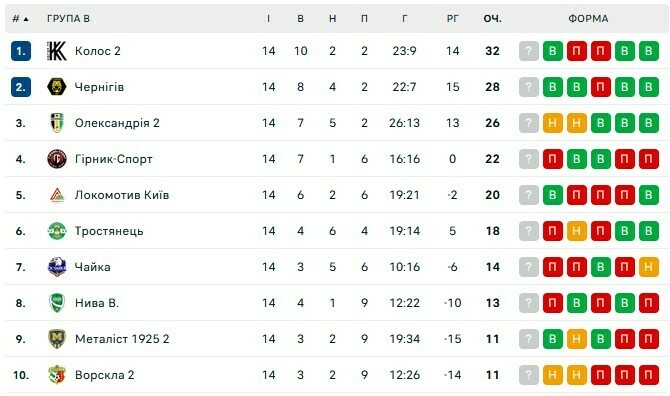 «Чернигов» со счетом 2:0 обыграл винницкую «Ниву» и благодаря ничьей в матче «Александрия-2» – «Ворскла-2» вышел на второе место. «Металлист 1925-2» одержал победу над клубом «Горняк-Спорт» и покинул последнее место.