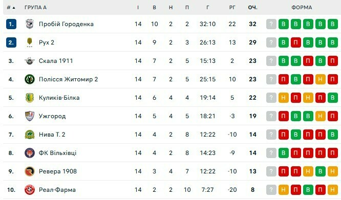 В Группе А «Рух-2» на выезде со счетом 2:0 обыграл клуб «Ревера 1908». Голы в составе победителей забили Дмитрий Себро и Максим Бойко. Во втором поединке «Скала 1911» победила «Полесье-2» и обошла житомирский клуб в турнирной таблице.