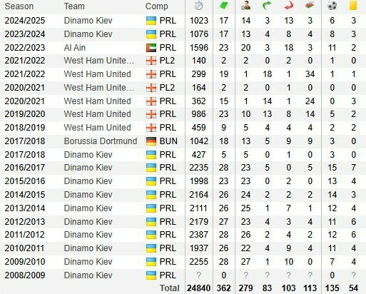 В матче 25-го тура УПЛ против Кривбасса (2:0) Ярмоленко забил супергол на 39-й минуте. Этот мяч стал для него 113-м в УПЛ.