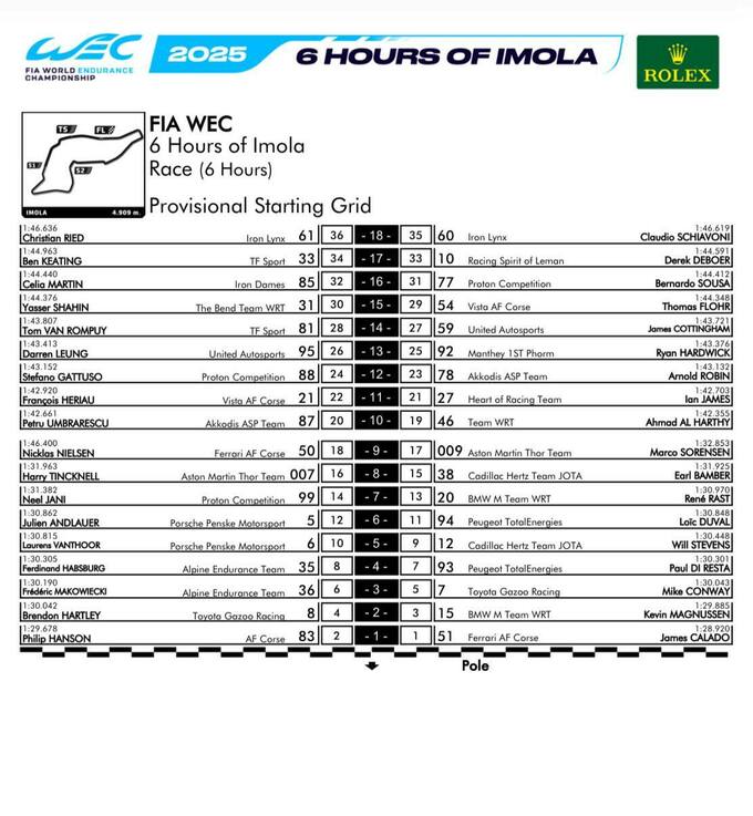 20 апреля 2025 года в 14:00 пройдет гонка второго этапа сезона гонок на выносливость WEC - 6 часов Имолы (Италия).