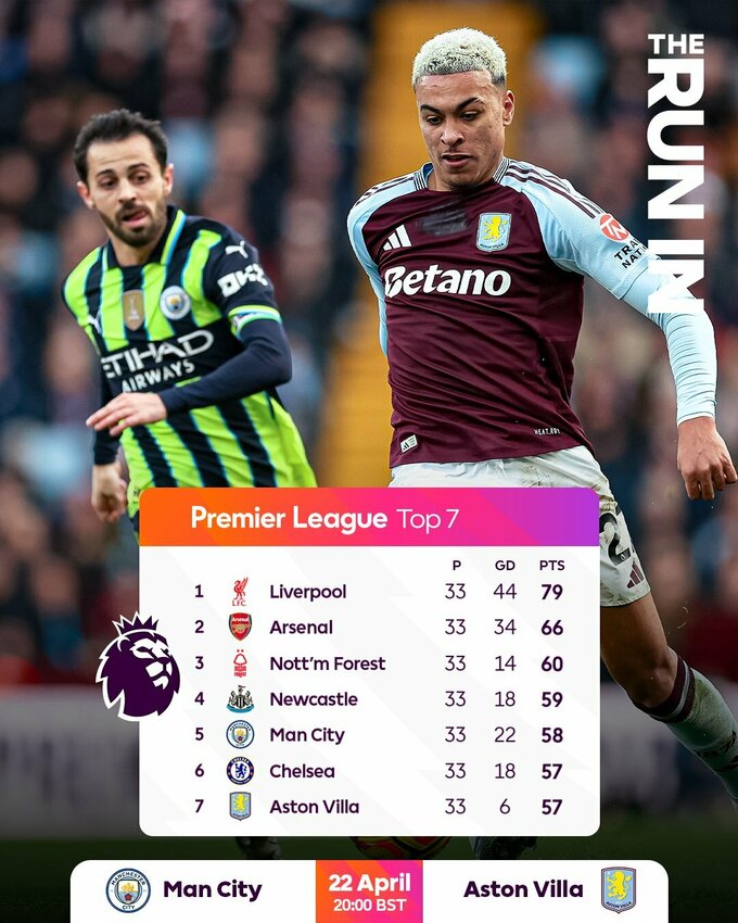 34-й тур АПЛ стартует 22 апреля вечерним матчем между Манчестер Сити и Астон Виллой.