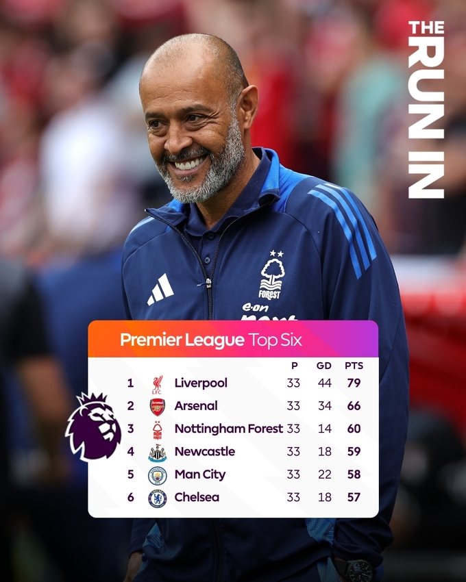 Топ-7 АПЛ: Ливерпуль (79), Арсенал (66), Ноттингем Форест (60), Ньюкасл (59), Манчестер Сити (58), Челси, Астон Вилла (по 57).