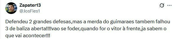 Zapater13: Он сделал 2 великолепных сейва, но этот паршивый Гимарайнш также пропустил 3 в пустые ворота!!!! Они сами себя погубят, когда Витория атакует, вы знаете, что произойдет!!!