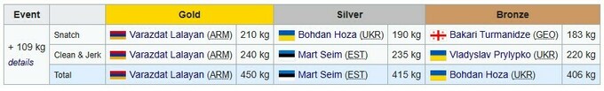 - 1. Вараздат Лалаян (Армения) – 450 кг (210 кг + 240 кг)