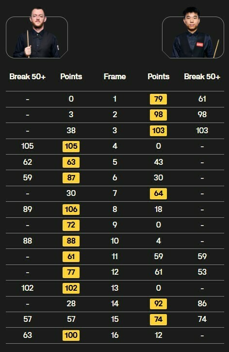 - 12:00. Джек Джонс (Уэльс) [16] – Чжао Синьтун (Китай) – 4:10 (итог матча)