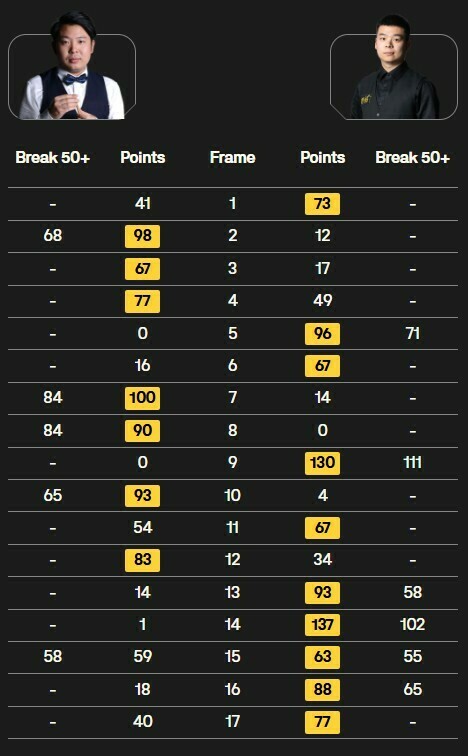 В 12-м фрейме Чжан снова повел (7:5), но после этого Пан прибавил и взял пять партий подряд – в том числе благодаря сериям 102, 55 и 65 – добившись исторической победы в Крусибле (10:7).