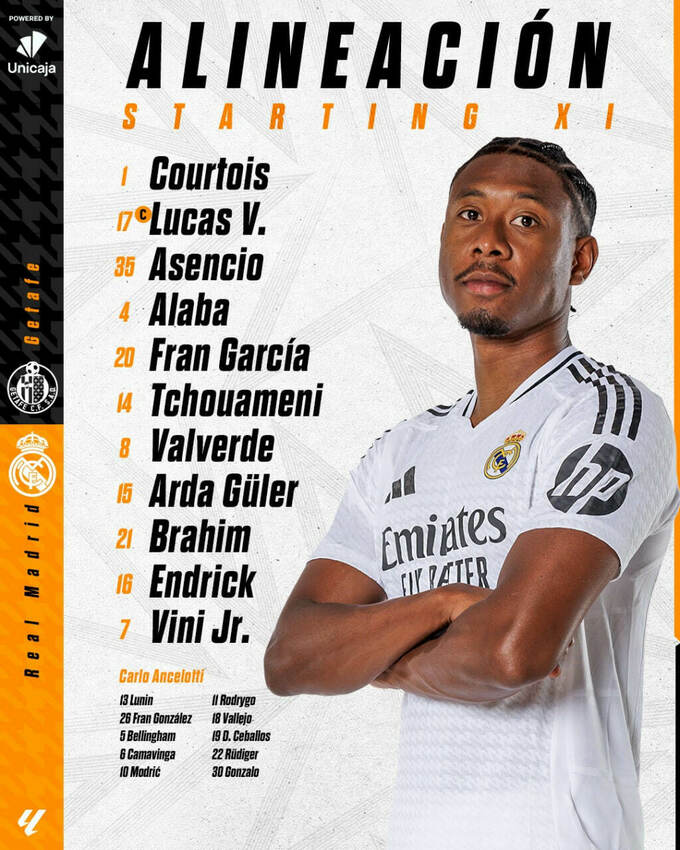 Главный тренер сливочных Карло Анчелотти назвал стартовый состав. Ворота королевского клуба будет защищать Тибо Куртуа, Андрей Лунин остался на скамейке для запасных.