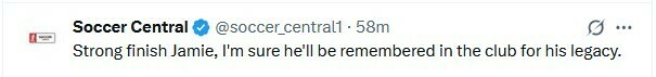 Soccer Centra: Сильный финиш, Джейми. Я уверен, что его будут помнить в клубе за его наследие.