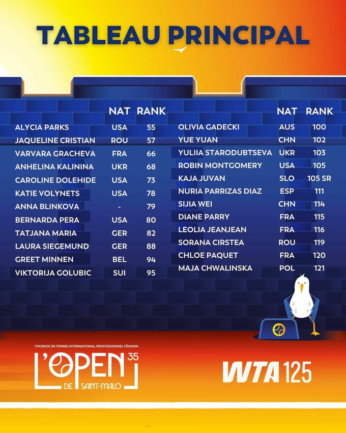 Помимо японки на турнире в Сен-Мало заявлены две украинские теннисистки: Ангелина Калинина (WTA 74) и Юлия Стародубцева (WTA 99). Первый номер посева получит американка Алиша Паркс (WTA 53). Турнир пройдет с 27 апреля по 4 мая.