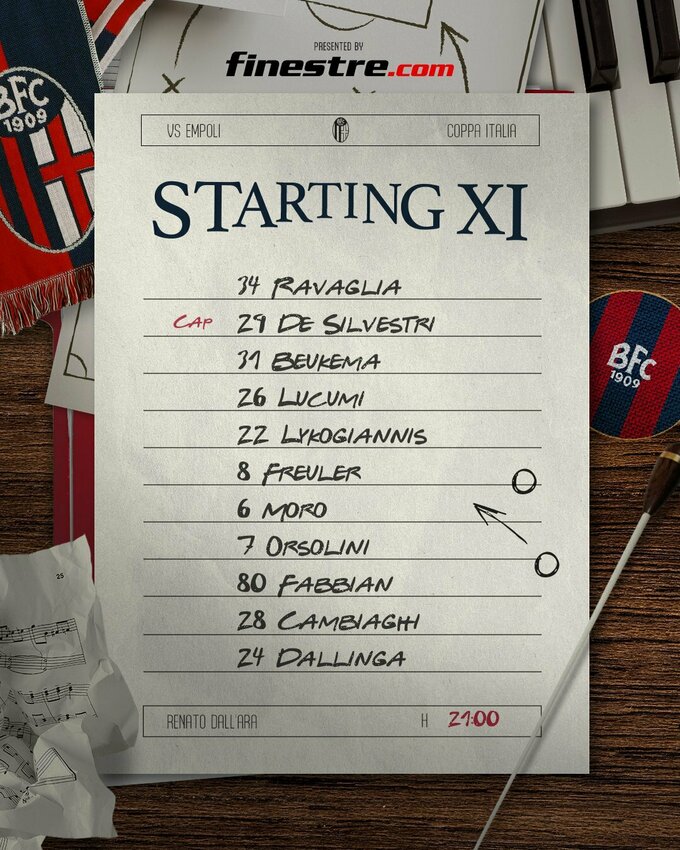 Стартовые составы Болоньи и Эмполи на матч Кубка Италии