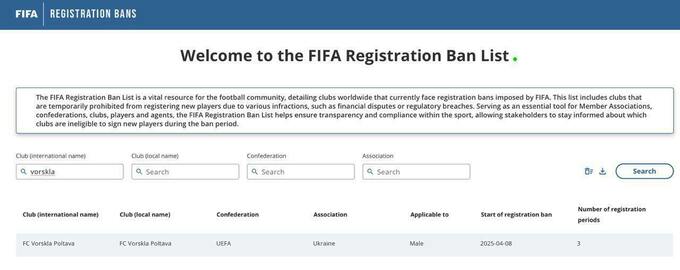 Интересно, что по данным с официально сайта ФИФА бан был наложен еще 8 апреля 2025 года.