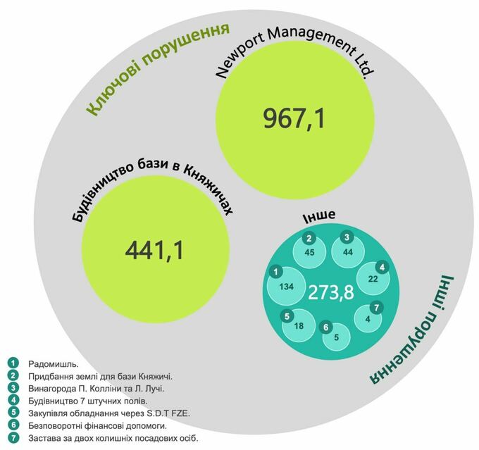 - расчеты через компанию Newport Management – 967,1 млн грн
