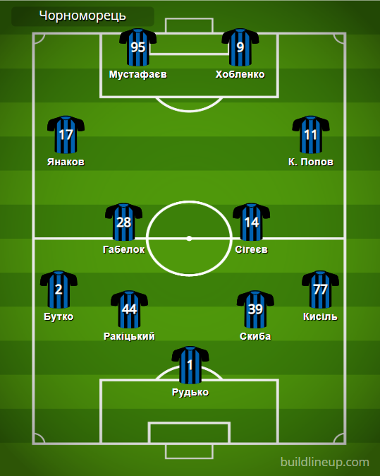 «Черноморец»: Рудько – Бутко, Ракицкий (Ермаков, 46), Скиба, Кисиль (Райан, 61) – Янаков, Габелок (Шевцов, 69), Сигеев (Лацабидзе, 61), К. Попов (Тоиров, 69) – Мустафаев, Хобленко.