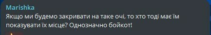 Marishka: Если мы будем закрывать такие глаза, то кто тогда должен им показывать их место? Однозначно бойкот!