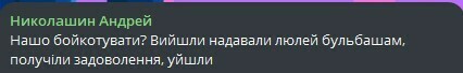 Николашин Андрей: Зачем бойкотировать? Вышли, надавали люлей бульбашам, получили удовольствие, ушли.
