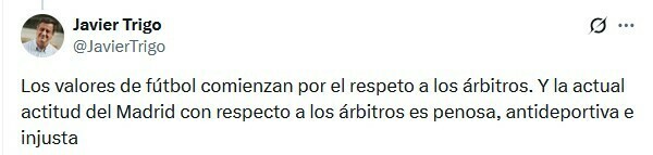Javier Trigo: Футбольные ценности начинаются с уважения к судьям. А нынешнее отношение Мадрида к судьям жалкое, неспортивное и несправедливое.