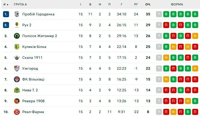 В Группе А состоялся поединок второй и первой команд турнирной таблицы. «Рух-2» принимал «Пробий». Гости открыли счет на 18 минуте после точного удара Владислава Фелиповича. А через две минуты Василий Палагнюк отправил в ворота «Руха-2» второй мяч. Благодаря этой победе «Пробий» оторвался от соперника на 6 очков.