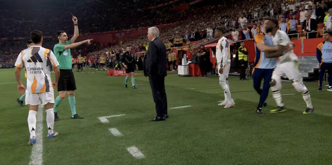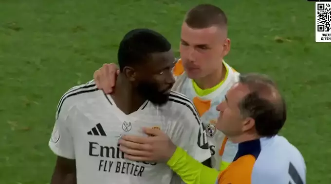 Немецкий защитник что-то швырнул в сторону рефери. Когда судья подошел показывать ему красную карточку, то Антонио сорвался и начал рваться к нему, однако центрбека уже держали. По итогу сдерживать Рюдигера подошли аж шестеро человек.