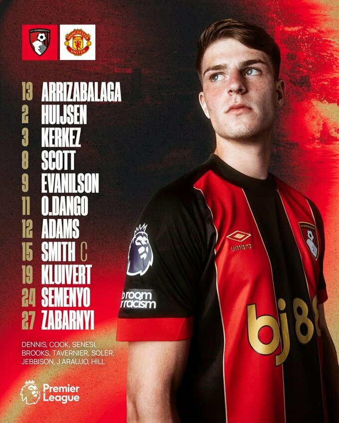 Стартовые составы на матч «Борнмут» – «Манчестер Юнайтед»: