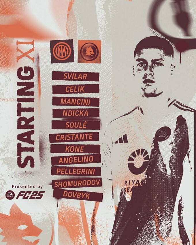 Главные тренеры команд определились со стартовыми составами. Украинский нападающий «Ромы» Артем Довбик начнет матч в стартовом составе.