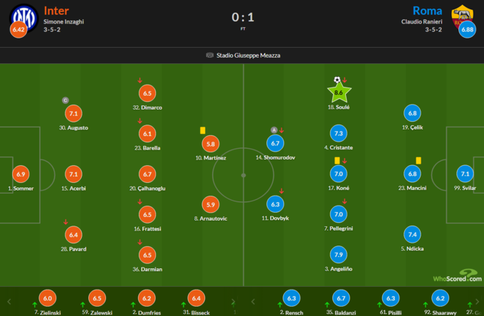 Лучшим игроком матча стал вингер гостей Матиас Суле, на счету которого гол и оценки 8.2 и 8.6.
