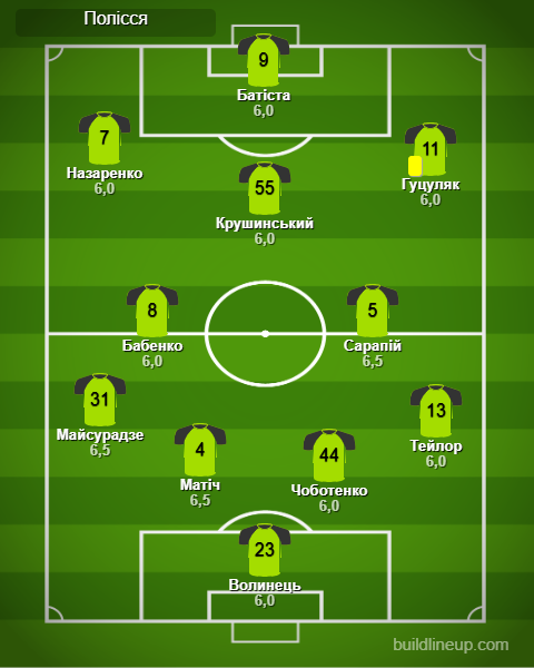 «Полесье»: Волынец – Майсурадзе, Матич, Чоботенко, Тейлор (Виалле, 61) – Бабенко, Сарапий – Назаренко, Крушинский (Андриєвский, 74), Гуцуляк (Битон, 81), – Батиста (Бристрич, 81)
