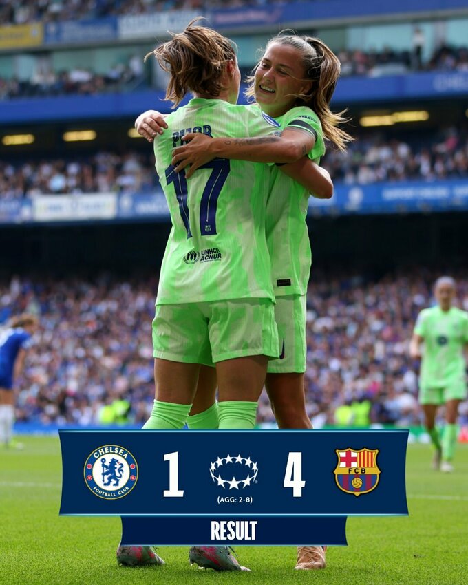 Испанская Барселона второй раз разгромила английский Челси (4:1), снова отгрузив соперницам 4 мяча (4:1 неделей ранее).