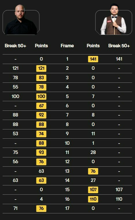 Люка Бресель (Бельгия) – Дин Цзюньхуэй (Китай) – 13:4
